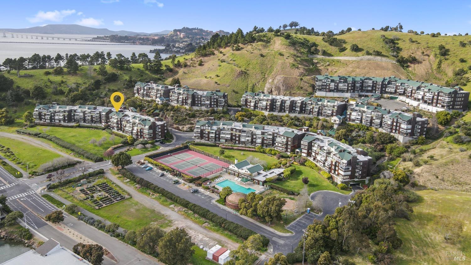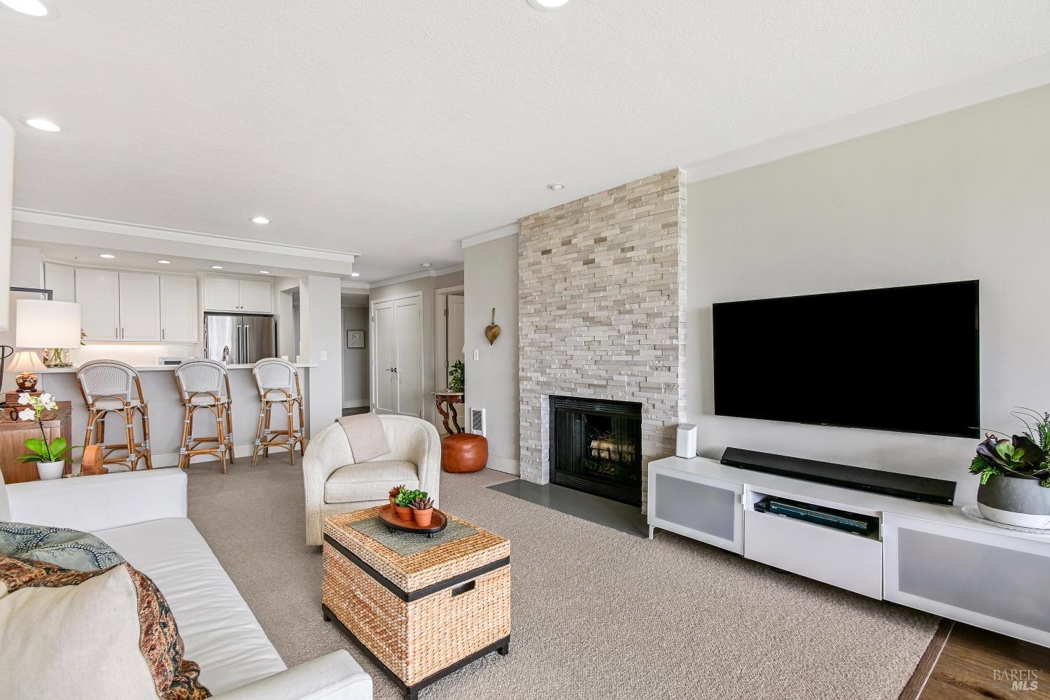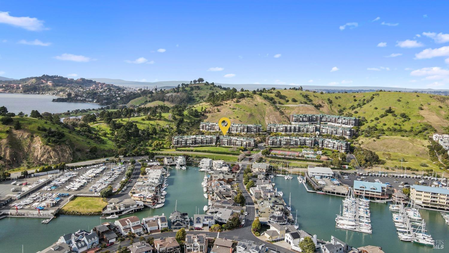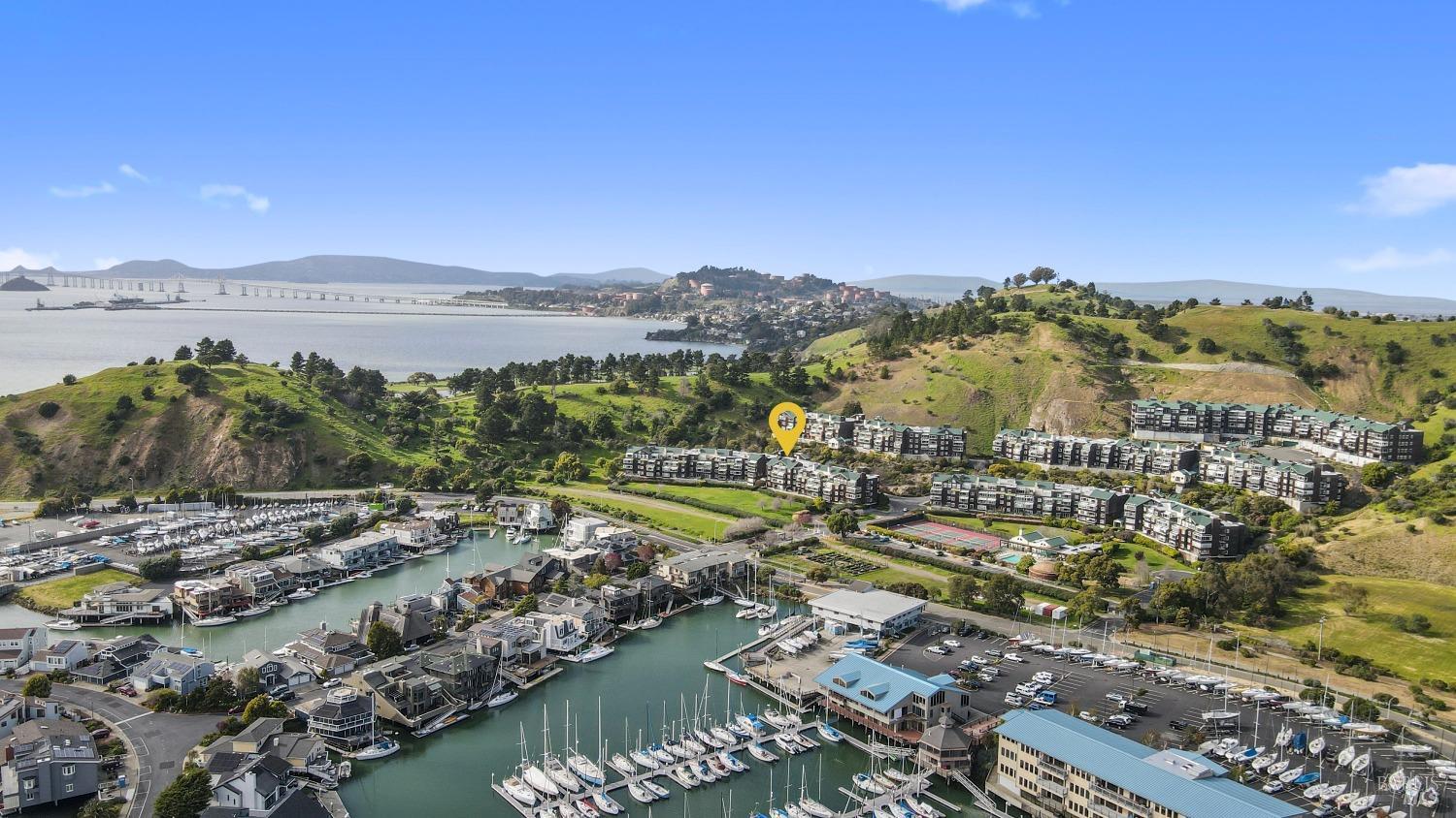 Views! Views! Views! Look out your window as you are eating dinner and enjoy the views of San Francisco, Angel Island and the Bay Bridge. Each evening there are stunning sunsets. This beautiful 2-bedroom, 2-bathroom condo offers 1,251 square feet of meticulously updated living space. The kitchen shines with new stainless steel appliances, granite countertops, and sleek new cabinets. Enjoy the warmth of wool carpet in the living room, complemented by crafted crown moldings throughout. Attention to detail is evident in every corner, with ceiling fans providing a cool breeze against the afternoon sun. Community amenities include a communal hot tub, sauna, pool, and gym, as well as a tennis court and clubhouse. Community garden to try to your green thumb skills. Includes 2 assigned parking spots in a gated garage with additional storage. Proximity to the Richmond Yacht Club and easy elevator access enhance your lifestyle. Enjoy the convenience of being just minutes from the ferry to San Francisco, making it ideal for commuters. Centrally located, this home offers easy access to the East Bay, San Francisco, Marin County, and Lake Tahoe for weekend getaways. Community perks include a hot tub, sauna, pool, gym, and guest parking. Living here feels like you are on vacation everyday.