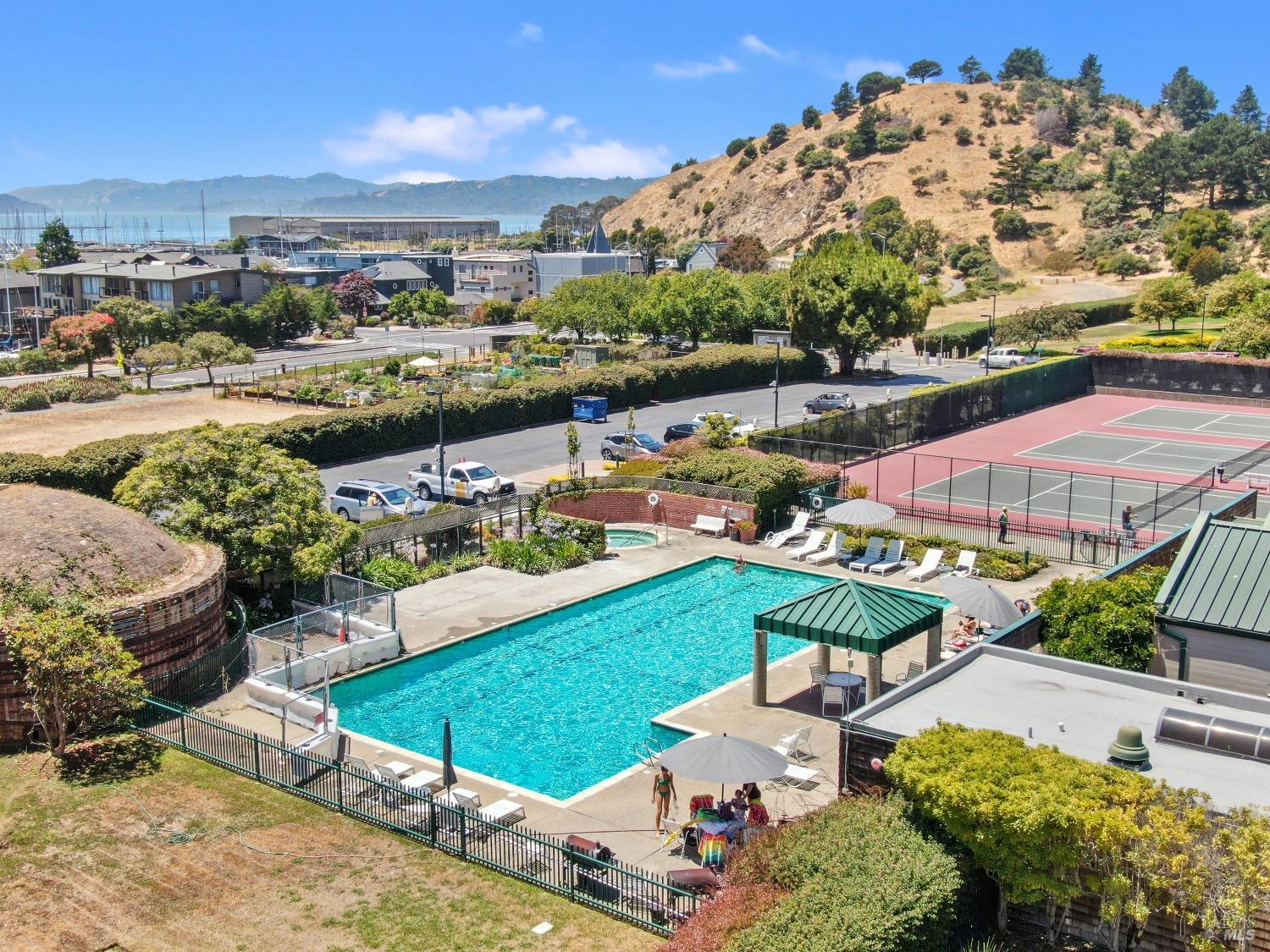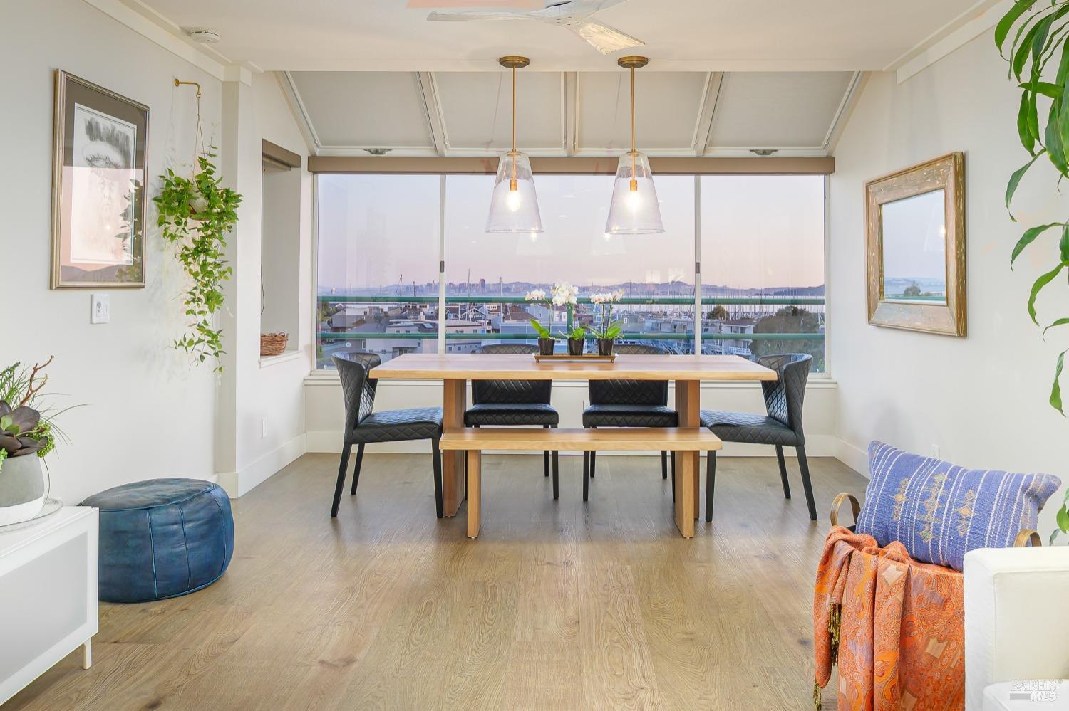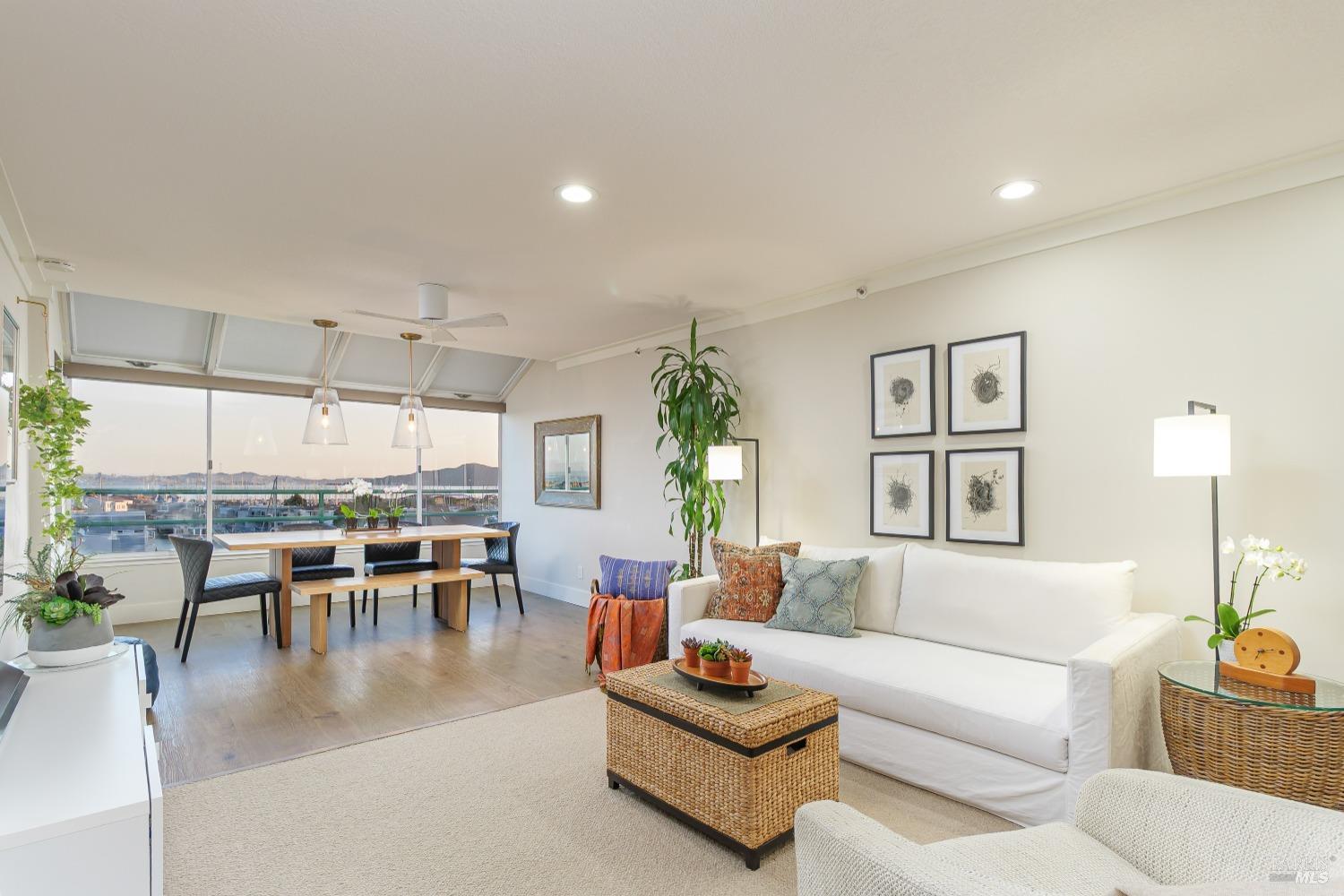 Views! Views! Views! Look out your window as you are eating dinner and enjoy the views of San Francisco, Angel Island and the Bay Bridge. Each evening there are stunning sunsets. This beautiful 2-bedroom, 2-bathroom condo offers 1,251 square feet of meticulously updated living space. The kitchen shines with new stainless steel appliances, granite countertops, and sleek new cabinets. Enjoy the warmth of wool carpet in the living room, complemented by crafted crown moldings throughout. Attention to detail is evident in every corner, with ceiling fans providing a cool breeze against the afternoon sun. Community amenities include a communal hot tub, sauna, pool, and gym, as well as a tennis court and clubhouse. Community garden to try to your green thumb skills. Includes 2 assigned parking spots in a gated garage with additional storage. Proximity to the Richmond Yacht Club and easy elevator access enhance your lifestyle. Enjoy the convenience of being just minutes from the ferry to San Francisco, making it ideal for commuters. Centrally located, this home offers easy access to the East Bay, San Francisco, Marin County, and Lake Tahoe for weekend getaways. Community perks include a hot tub, sauna, pool, gym, and guest parking. Living here feels like you are on vacation everyday.
