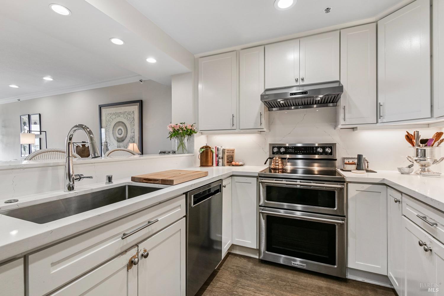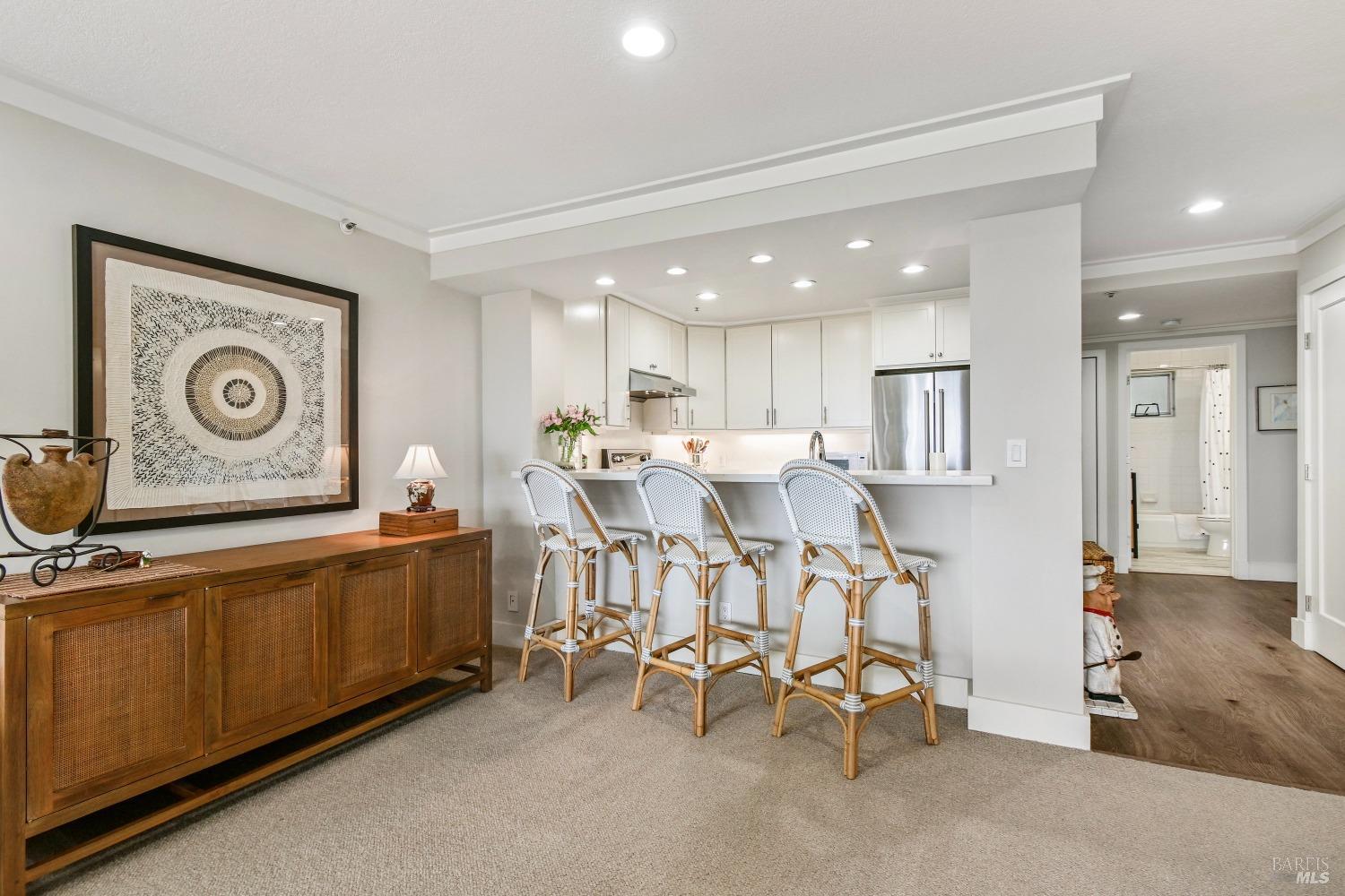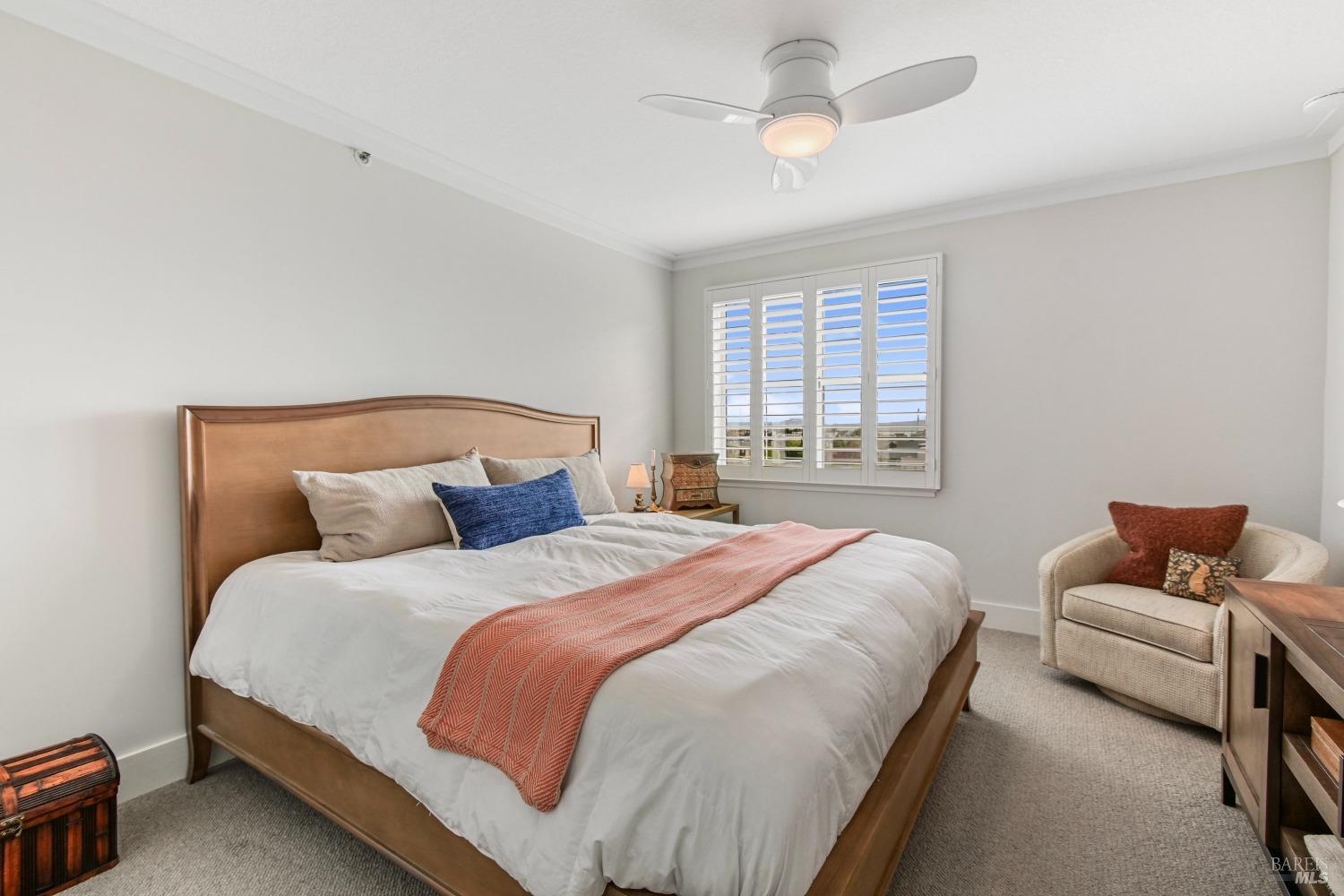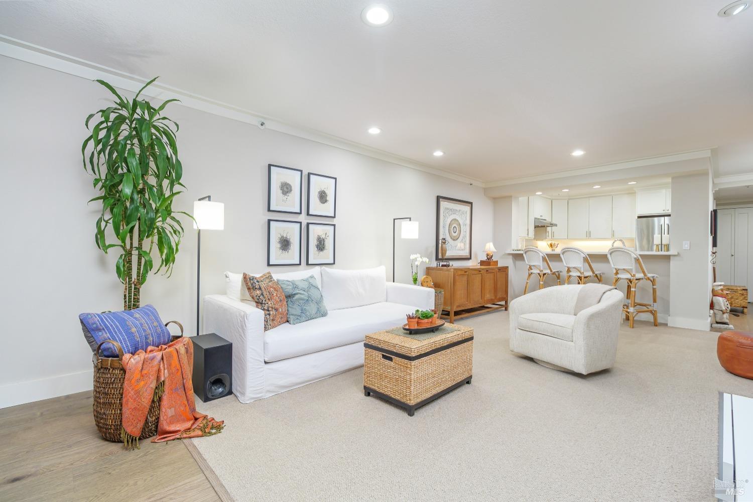 Views! Views! Views! Look out your window as you are eating dinner and enjoy the views of San Francisco, Angel Island and the Bay Bridge. Each evening there are stunning sunsets. This beautiful 2-bedroom, 2-bathroom condo offers 1,251 square feet of meticulously updated living space. The kitchen shines with new stainless steel appliances, granite countertops, and sleek new cabinets. Enjoy the warmth of wool carpet in the living room, complemented by crafted crown moldings throughout. Attention to detail is evident in every corner, with ceiling fans providing a cool breeze against the afternoon sun. Community amenities include a communal hot tub, sauna, pool, and gym, as well as a tennis court and clubhouse. Community garden to try to your green thumb skills. Includes 2 assigned parking spots in a gated garage with additional storage. Proximity to the Richmond Yacht Club and easy elevator access enhance your lifestyle. Enjoy the convenience of being just minutes from the ferry to San Francisco, making it ideal for commuters. Centrally located, this home offers easy access to the East Bay, San Francisco, Marin County, and Lake Tahoe for weekend getaways. Community perks include a hot tub, sauna, pool, gym, and guest parking. Living here feels like you are on vacation everyday.