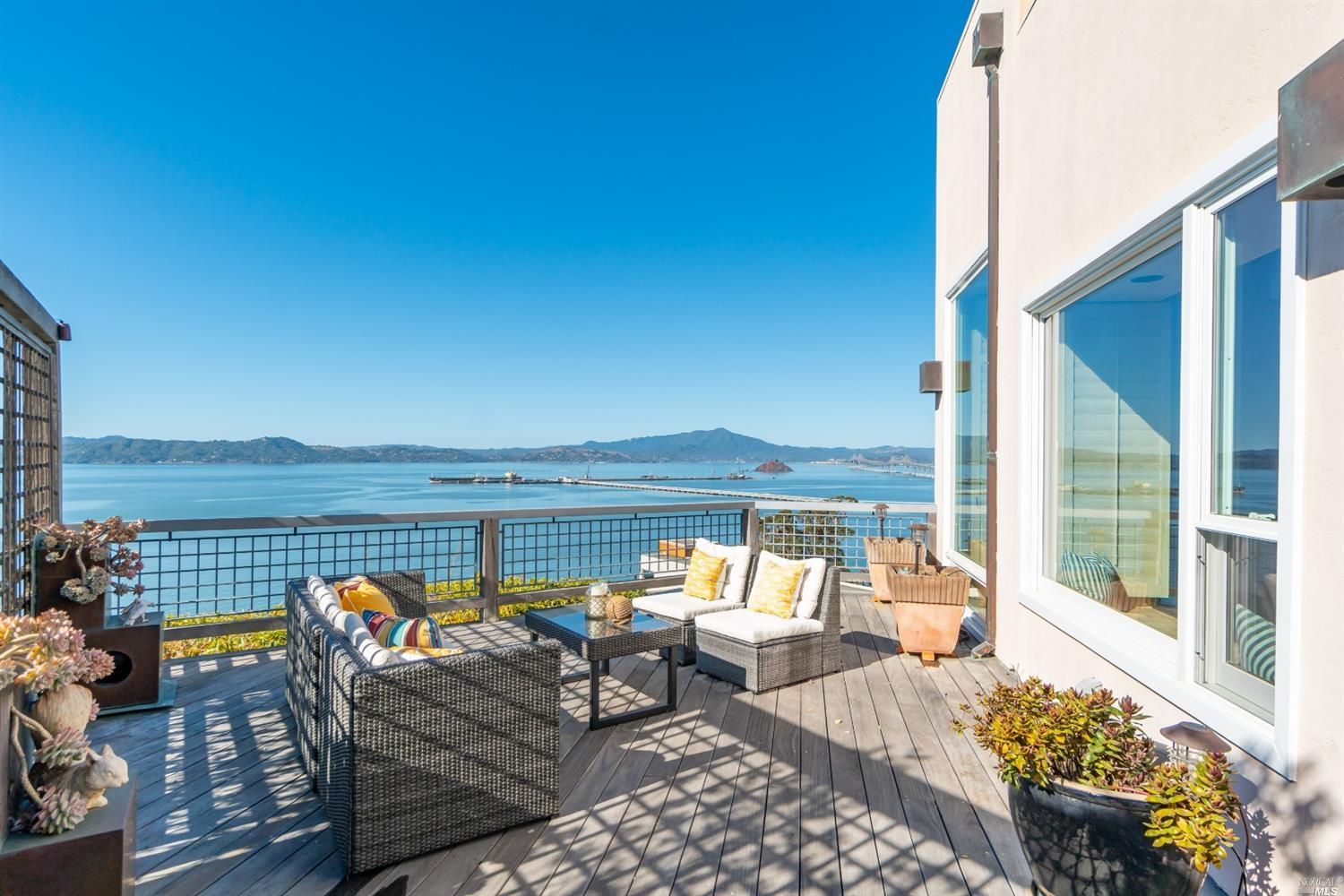 Welcome to 245 Water St.This gorgeous 2 BD/2.5 Bath home draws inspiration directly from its breathtaking panoramic 3 bridge views. Local Architect, Jonathan Livingston chose a warm earthy palette using open wooden beam ceiling reclaimed from a San Francisco Pier. Contemporary Mediterranean beauty, custom-built in 1990, is nestled in a cul-de-sac. Chef's kitchen, luxurious master suite w/spa-like bath, 15th century tile from a French Monastery, real venetian plaster, & soaring sand blasted open beamed ceilings. Specifically designed for entertaining & enjoyment of the world class views and spectacular sunsets! No detail or expense was spared in meticulously constructing this stunning, west facing modern home. It is close to Marin County, San Francisco and East Bay. Commuter Ferry to San Francisco. For biking enthusiasts, easy access to Bay Trail. For yachting enthusiasts, close to Richmond and San Pablo Yacht Club.