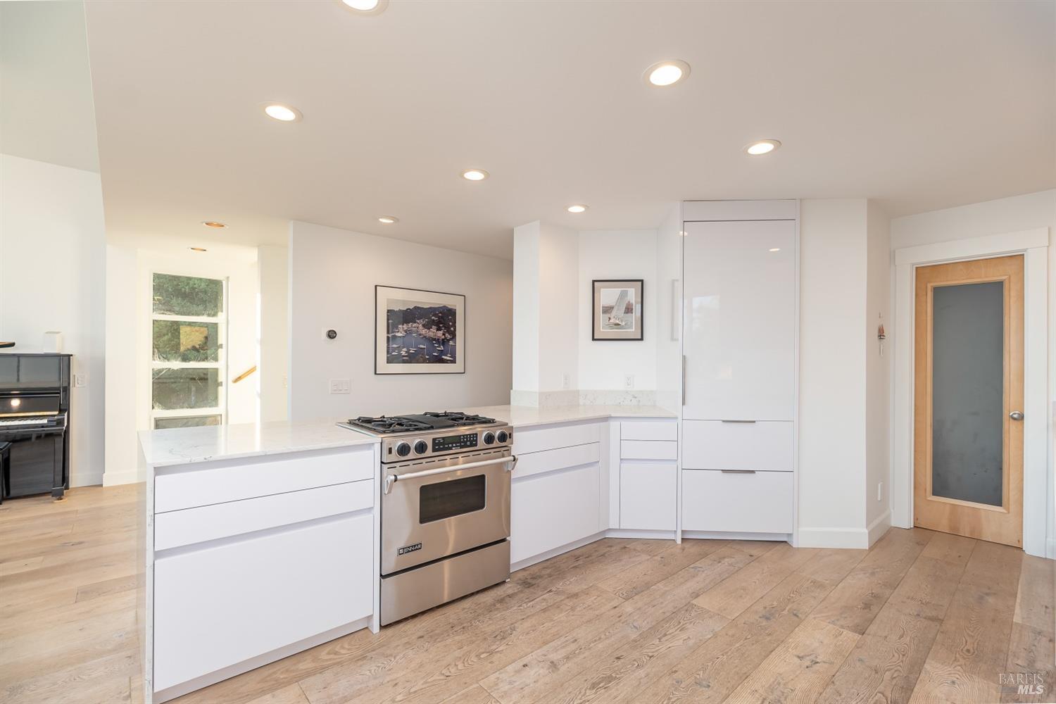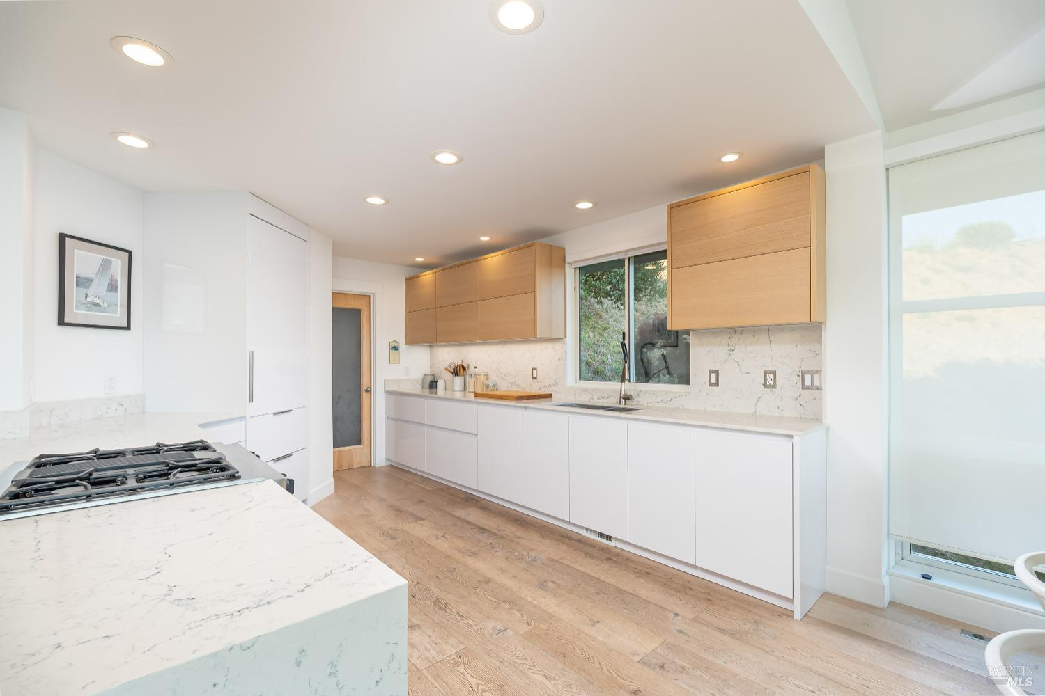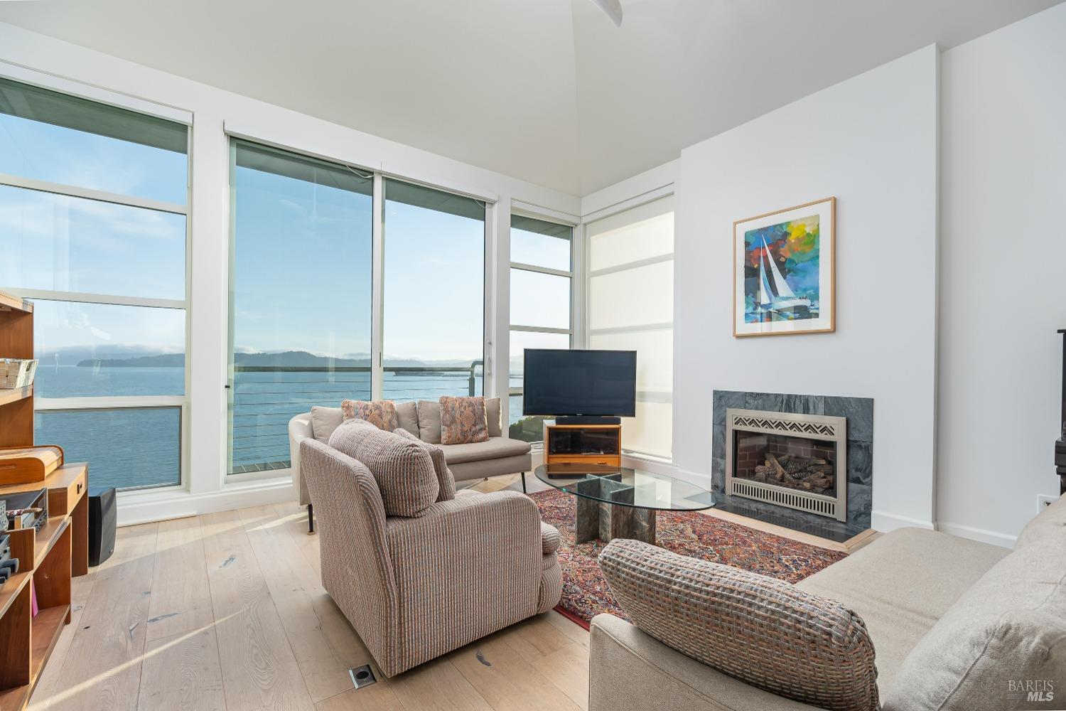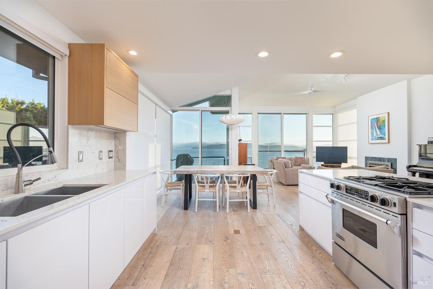 Views! Views! Views! 345 Pacific Avenue boasts captivating views of San Francisco, the Golden Gate Bridge, and Mt. Tam, with breathtaking sunsets as a daily treat. Embrace the allure of this sleek home, featuring two bedrooms, two baths, and a room for an office, media room, or craft room. Natural light floods the space, offering a Bay view from every room. Wide white oak floors and top-of-the-line appliances, including a Sub-zero refrigerator, Miele dishwasher, and Jennair gas cooktop stove, elevate the home's allure. A gas fireplace adds warmth, while Fleetwood view windows frame the stunning vistas. Experience the pinnacle of elegance and comfort in this remarkable home. No pets and no smokers please.